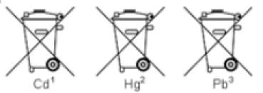 Schadstoffhaltige Batterien sind mit einem Zeichen, bestehend aus einer durchgestrichenen Mülltonne und dem chemischen Symbol (Cd, Hg oder Pb) des für die Einstufung als schadstoffhaltig ausschlaggebenden Schwermetalls versehen: